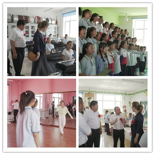 在揭牌仪式之后,bevictor伟德声乐舞蹈理论教研室党支部与昌德镇中心公司党支部就美育建设进行了深入的交流。随后实地参观考察了该校美育建设成果,并进行指导。