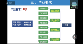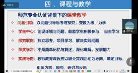 沈丹副经理从认证内涵、培养目标、毕业要求、课程与教学四个方面进行了全面细致的讲解交流。讲座得到了全体与会教师的一致好评。大家表示,沈经理讲的都是干货,听了茅塞顿开、十分解渴,对今后师范生的教学很有帮助。原定时间为一个半小时的讲座超时四十分钟。