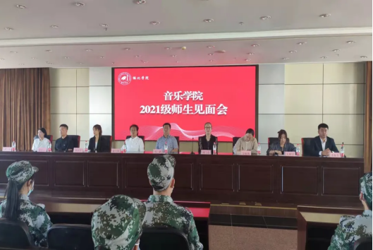 最后,理论教研室主任金相莉老师,舞蹈编导教研室主任李清洁老师,声乐教研室主任王环宇老师,器乐教研室主任郭启力老师,分别介绍了各教研室的课程安排及教师情况,对课程规划、学习要点等方面做了详细的讲解,让2021级新生对军训结束后的学习课程有了很深的认识和了解。