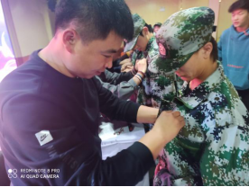 全体参会老师亲自为每名新生佩戴上伟德bv国际体育校徽,并热情的向他们献上祝福,从戴上校徽的那刻起,“绥大人”三个字深深的印刻在每一名音乐新生心里,让新生们有了家的归属。