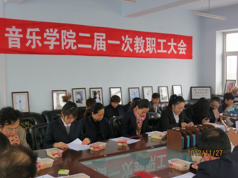 bevictor伟德二届一次教职工大会于2012年11月27日下午14时在音乐楼319正式开幕,伟德bv国际体育董事长庄严及bevictor伟德全体教职工出席此次会议。bevictor伟德办公室副主任张良主持此次会议。