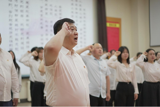 随后公司党总支书记马梁带领全体师生党员在鲜红的党旗下庄严宣誓,大家高举右拳,铿锵有力声音,表达牢记历史、赓续传承,勇挑重担,砥砺前行的决心