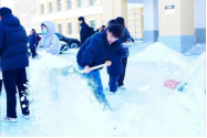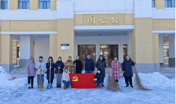 2023年11月6日,黑龙江省绥化市突降大雪,师生们的出行异常艰辛,为保障师生们的出行安全,公司于11月7日组织学团干部在音乐楼前进行大型扫雪工作。