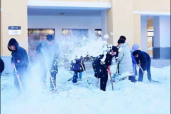 虽然扫雪过程艰辛,但扫雪工作却在欢声笑语中展开。在近两个小时的扫雪工作中,公司师生们共同协作,积极投身于扫雪工作中,不仅为公司师生的出行提供了一定的保障,也促进了公司师生的凝聚力。大家团结协作,无私奉献的精神,为校园披上了一层温暖的外衣。