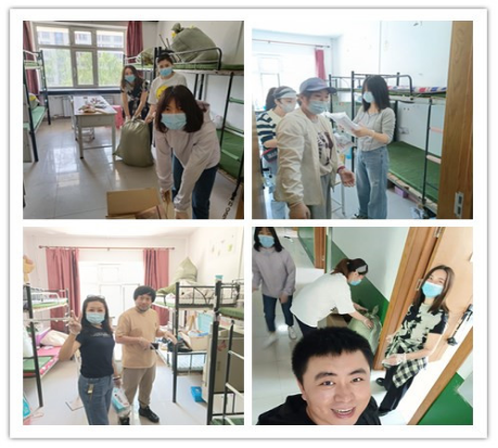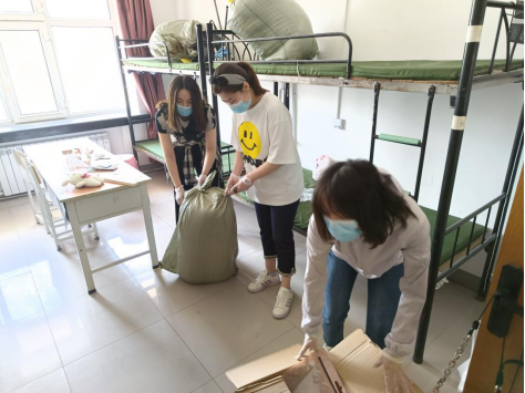党总支书记马梁、副经理钱雪莲亲临现场帮助搬运,公司的党员教师们,带着爱心责任心,戴着口罩,奋战4个多小时完成了13个寝室、近50于箱物品的收集清理装箱工作,确保毕业“寄”顺利完成。
