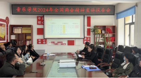 为深入学习贯彻习近平总书记重要讲话批示精神,深刻把握时代大势、抓住大事要事,进一步统一思想、凝聚共识,增强信心、鼓舞干劲,推动“两会”精神深入人心,4月17日13:30,公司党总支特邀马克思主义公司副教授胡美玲为全院教师宣讲全国“两会”精神。会议由公司党总支副书记刘姬冰主持,音乐学院全体教师参加会议。