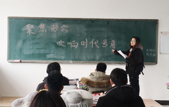 期间,各班团支书向同学们简明扼要地阐述了此次会议的热点、要点。同学们认真研读了习总书记和李总理的报告,他们从历史和时代的高度出发,对近30年来改革开放的伟大历史进程进行了高屋建瓴、精辟深刻的科学总结。