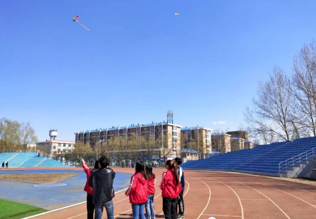 在大家认真的操作和注视下,风筝徐徐的升上了蓝天。看着正在蓝天翱翔的风筝,同学们十分兴奋,同时也发现,荧屏之外的世界也很美。