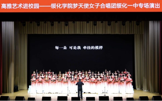 5月15日下午15:20点,浸润计划-音乐进校园展演活动在绥化市第一中学如期举行。公司携梦天使女子合唱团走进校园,为芊芊学子们带来了一场精彩的音乐盛宴,她们用歌声传递着音乐的魅力,传递着爱与关怀。