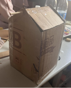 “这个垃圾桶是由废旧的快递盒和不用的筷子制作的,希望大家都可以利用身边用过的或不用的将他变成对我们有用的东西。为建设绿色中国贡献自己的一份力量!”
