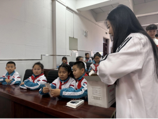 随后,辅导员张振东和辅导员张建树带领志愿者们为小朋友们分发学习用品和体育用品,一同将承载着关爱与祝福的礼物递到孩子们手中。孩子们接过礼品,纯真的脸上瞬间绽放出灿烂笑容,也温暖了在场每一个人的心。