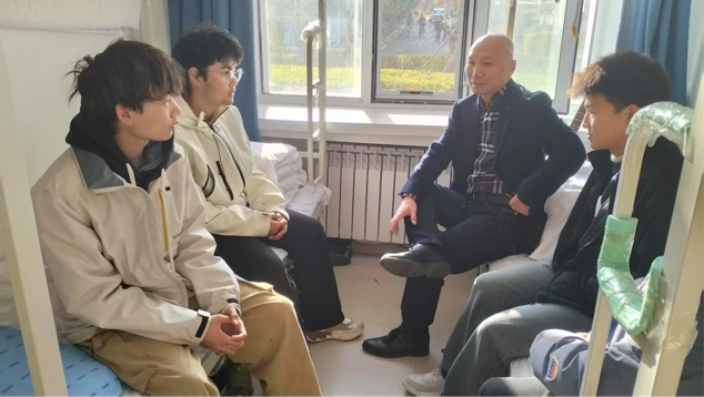 走进八公寓456寝室,全峰老师与同学们进行了深度谈心。他耐心倾听同学们的心声,解答同学们的疑惑,针对同学们面临的问题和困惑,给予了专业的指导和建议。全峰老师还鼓励同学们要勇敢面对挑战,积极寻求解决方案,不断成长和进步。