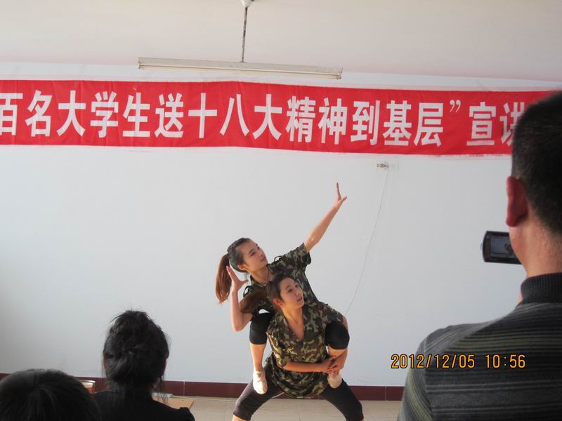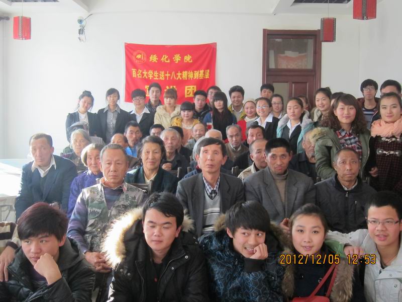 思政部张继梅带领的宣讲团结合宝山当地实际和留守儿童、空巢老人关注的话题对十八大精神精神进行了解读,简单易懂的语言,丰富多彩的宣讲形势深受老人和孩子喜爱。