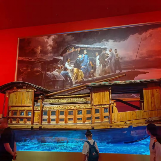 走进中国共产党历史展览馆,仿佛穿越了时空,走进了一段恢弘的历史。展览馆的展出由鸦片战争开始,通过2600余篇图片3500多件文物实物第一次全方位、全过程全景式、史诗般展览中国共产党波澜壮阔的百年历程。在中国共产党的成立的展览区域,停着一艘红船,当年中共一大代表陆续来到这里,挤在船舱里,庄严宣告中国共产党的诞生。它记录着中国共产党的成立,承载着中国共产党为中国人民谋幸福,为中华民族谋复兴的初心。