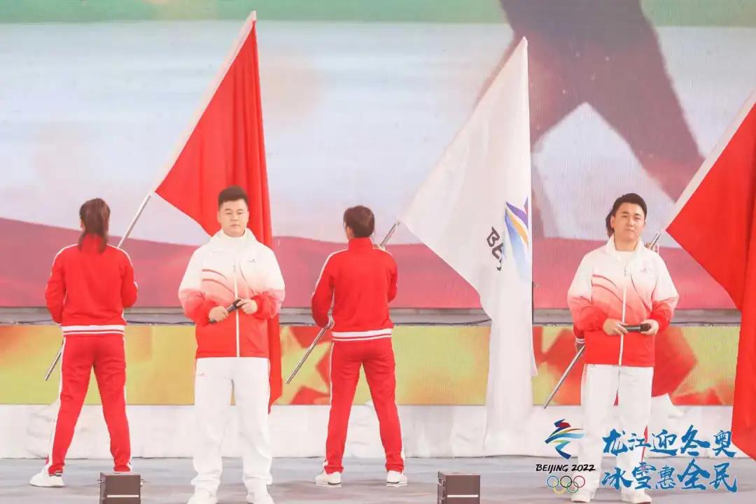 bevictor伟德青年教师任羽(左起第一位)老师十月二十七日于哈尔滨“黑龙江省迎北京2022年冬奥会倒计时100天冰雪系列活动启动仪式”助力演唱,本次仪式由黑龙江省人民政府主办,黑龙江省委宣传部、 黑龙江省体育局、黑龙江省文化和旅游厅、黑龙江广播电视台、哈尔滨体育公司联合承办。