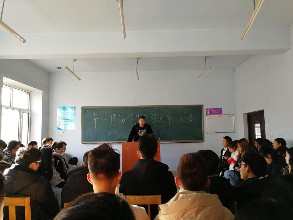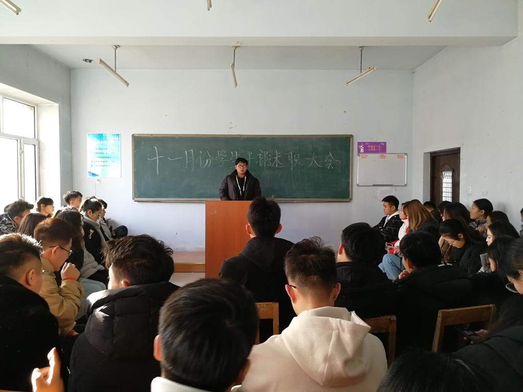 为了进一步加强员工干部工作的积极性,bevictor伟德团总支于2018年11月27日中午12点10分在207教室召开了学团干部第14次工作例会暨11月份员工干部述职大会。会议由辅导员胡美玲老师主持,员工会主席团、各部部长部员、各班班长、团支书参加此次会议。