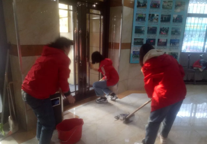 志愿者们自带毛巾、拖把等清洁用具,在康复中心一楼进行大扫除,她们细心的清理每一处的灰尘,希望给孩子们创造一个干净、整洁的环境。