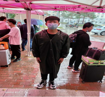 大雨滂沱,我们的2017级员工志愿者张楚良、张嘉轩、曹洋等人身穿雨衣轮流站在路口,为了让每一位下车的学弟学妹看到自己,雨淋着、风吹着却毫无怨言。辅导员老师更是在室内室外来回穿梭,迎接着自己的员工。返校的员工更是自觉遵守返校流程,接受体温检测,核验龙江健康码,配合工作人员进行核酸检测。