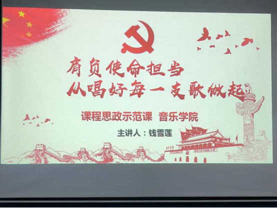 本次讲座,钱老师梳理了各个时期的经典传唱歌曲,剖析了歌曲创作背后的历程,展现了中国共产党团结带领全体中国人民进行的波澜壮阔的奋斗史歌!从《义勇军进行曲》到《春天的故事》再到《在灿烂阳光下》,同学们听的群情激动、热血沸腾!大家表示,要从唱好每支歌做起,自觉运用习近平新时代中国特色社会主义思想武装头脑,坚决贯彻文艺为人民服务的根本方向,用作品讴歌党、讴歌祖国、讴歌时代、讴歌英雄,肩负起国家富强和民族复兴的时代伟业。