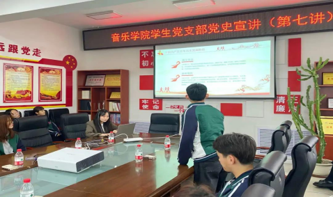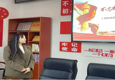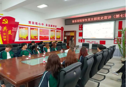 5月7日公司于音乐楼三楼会议室开展党史学习教育宣讲第七讲,宣讲人为员工党员--刘田田。