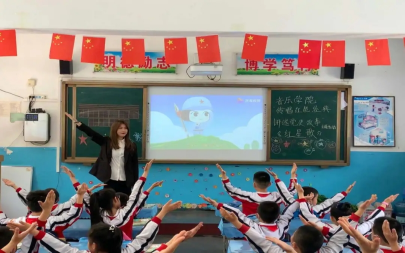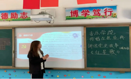 上午十一点,公司2018级员工党员--王玲淑带领雷锋小学二年级四班的同学学唱了歌曲《红星歌》,向小朋友们讲述了歌曲背后的故事。
