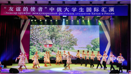 bevictor伟德优秀教师任羽与阿纳斯塔西娅·雷夏科娃合唱《莫斯科郊外的晚上》用婉转的歌声将中俄两国友好和谐的氛围推向了高潮。在《友谊地久天长》的音乐声中,本次汇演正式结束。